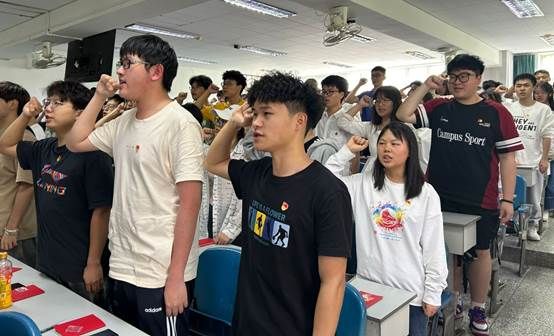 毕业生党员代表唐英文和预备党员代表廖子禾分别发言。唐英文与毕业生党员一起回顾了四年来从“一名青涩学子到一名共产党员的蜕变与成长”,结合个人求学的经历和入党以来的成长历程,与新发展党员交流专业学习、学生干部工作中的收获和感悟,鼓励学弟学妹努力学习专业知识,不断锤炼意志,用青春的活力和激情,在党的领导下,为实现中国梦贡献力量。“我将严格要求自己,接受党组织的考察和培养,争取早日成为一名合格的共产党员。”新发展党员廖子禾表达了以优秀的毕业生党员为榜样,不断奋进前行,不忘初心,牢记使命,积极作为,勇于担当的决心。