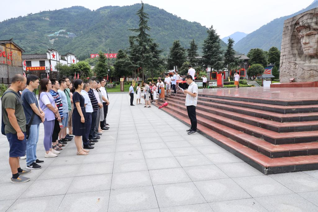 在中国工农红军强渡大渡河纪念碑前,面对鲜红的党旗,全体党员同志高举右拳,重温入党誓词:“我志愿加入中国共产党,拥护党的纲领,遵守党的章程,履行党员义务……随时准备为党和人民牺牲一切,永不叛党。”与此同时,对10名师生党员进行了表彰。“我们成长在最好的时代,党和国家为我们提供了良好的学习和工作环境,我们也深知新时代机遇与挑战并存,我们将以优秀为榜样,不忘入党初心,牢记为党育人、为国育才使命。”教师优秀共产党员代表雷小龙同志在发言中说。