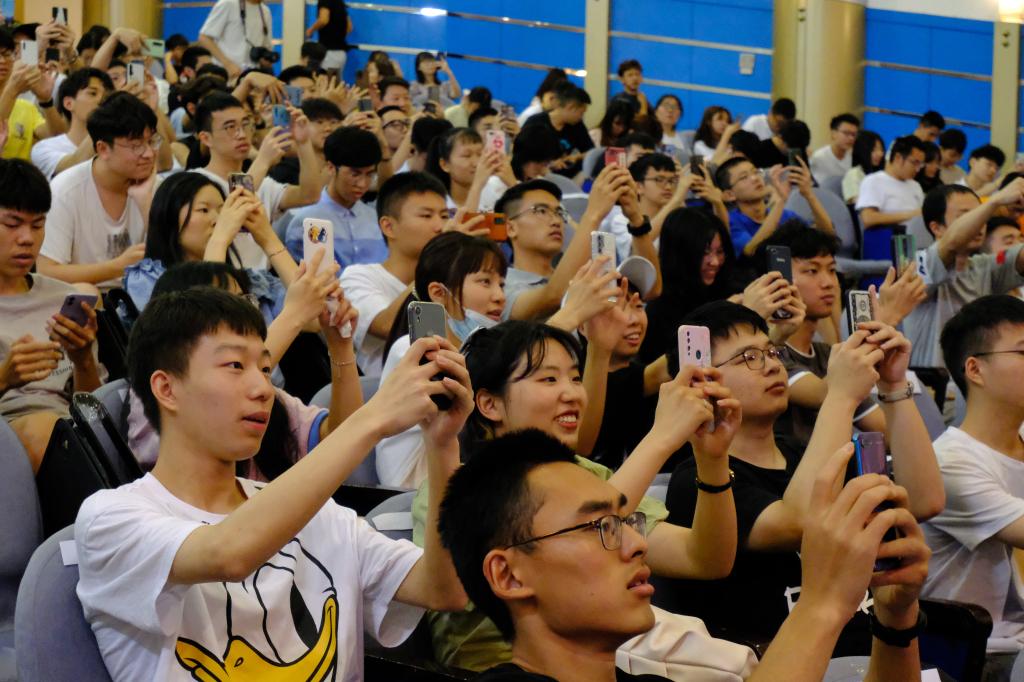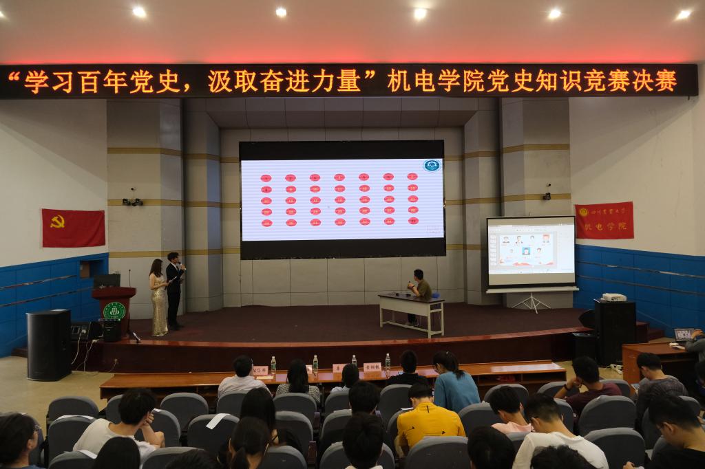 百名师生选手通过现场竞答庆祝建党百年。决赛分为在线答题100进10、1V1抢答10进5、复活赛95进2、冠军争夺赛7进5、现场互动问答几个环节。100进10环节将百名选手分成五组,依次带至场外进行答题,场内进行党史视频学习有奖竞答互动,通过观看《觉醒年代》、《百年党史100秒》等视频,现场两百余名中共党员和入党积极分子争相回答“五四运动的时间?”“中共一大在哪召开?”“《中国共产党章程》在党的第几次代表大会通过?”现场气氛热烈。