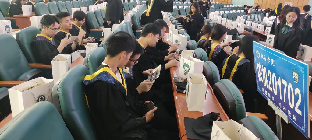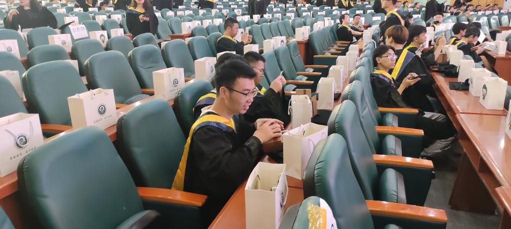 为了使此次毕业纪念品的发放更具有仪式感,机电团委老师及学生会成员特别设计了在授位仪式之前,提前将纪念品放在每个座位上的小心思,为机电毕业学子更增添了一份来自于毕业纪念礼物的惊喜。