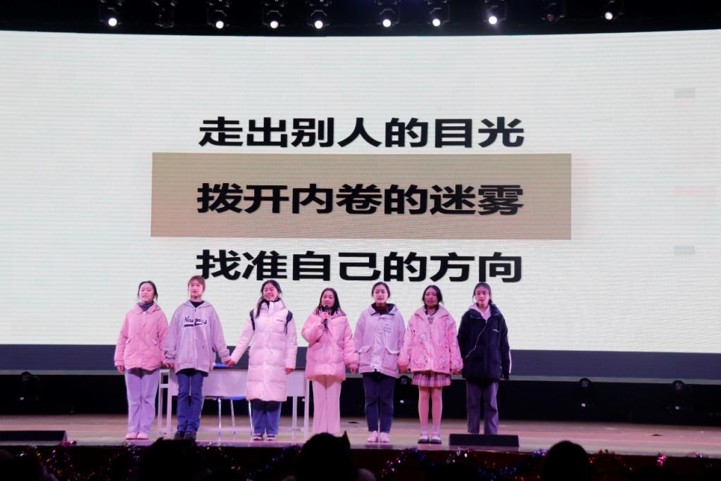 “红日升在东方,其大道满霞光。我何其幸,生于你怀”,由人文学院青衣艺术团带来的开场舞《万疆》点燃了全场观众的热情,八路军抗战故事《雪》重现革命先烈负重前行场景,难以忘怀;认真学习、做好自己,学会拒绝那些看似理所当然实则无理的要求,这是来自小姜同学的《醒·悟》;在这个日益内卷化的时代,当代大学生应该勇于走出自己的小圈子,去寻觅那个《镜子里的自己》,寻觅那个真实而上进的自己;我们不止一次地问自己《错了吗》,但人生从未告诉我们什么是对的,答案只有靠我们自己去寻找;作为独立的个体,个体差距的存在是必然的,面对差距,我们需要做的并不是一味地与别人比较,而是不断地《超越自己》;1915年巴黎和会上的外交失败点燃了青年们的爱国热情,100年前,《觉醒,新青年》,100年后,奋进,新时代。一个个节目从不同角度引发观众的强烈共鸣,使得现场观众时而群情激愤、时而低声啜泣、时而又捧腹大笑。“很难想象有这种比赛制的活动每一个节目都做的如此好,无论从表演、道具还是氛围都让人如此强烈的感受到节目的用心。”“最让我感动的是活动现场居然为每一位观众都准备了小礼品和暖宝宝,真的太暖心了!”最终,剧目《超越自己》突出重围斩获一等奖。