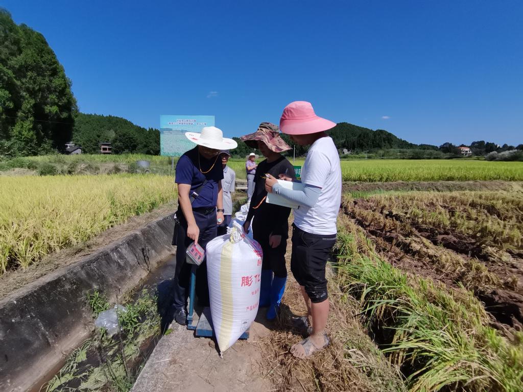 9月20日,四川省农业农村厅主持并邀请有关专家,对我校承担的农业农村部农业重大技术协同推广项目—“四川省水稻绿色提质高效集成技术推广应用”课题南部示范区进行了田间现场验收。农学院任万军教授担任该项目的技术首席,威尼斯98488雷小龙副教授担任南部县技术专家负责项目实施。四川省农业科学院水稻高粱所徐富贤研究员、四川省农业农村厅种植业与农药肥料处刘代银研究员、冯泊润高级农艺师、南充市农业农村局杜晓宇和曾宪堂推广研究员组成的专家组进行了本次验收。