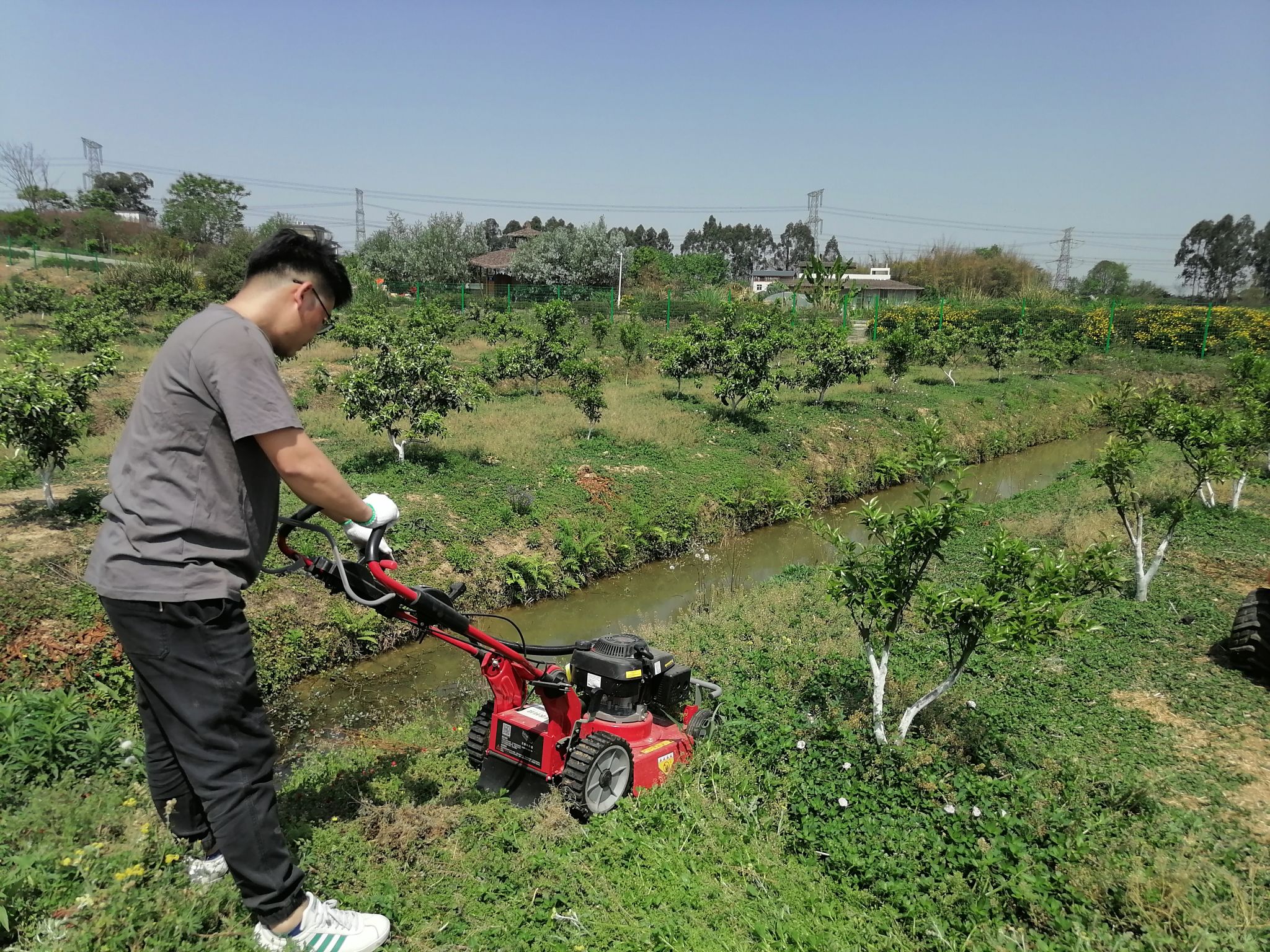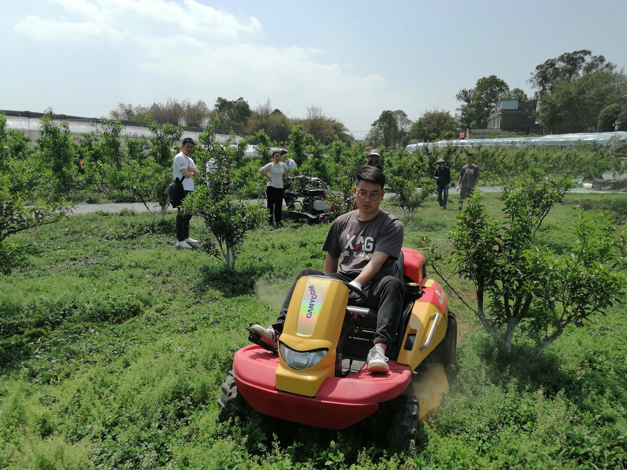 本次示范的果园农机设备由四川耀农农业装备有限公司协助提供。在农场的柑橘园,团队分别使用手扶式割草机、手扶履带自走式碎草机和乘坐式割草机进行了割草作业,并对比和分析了不同割草机的割草效果。