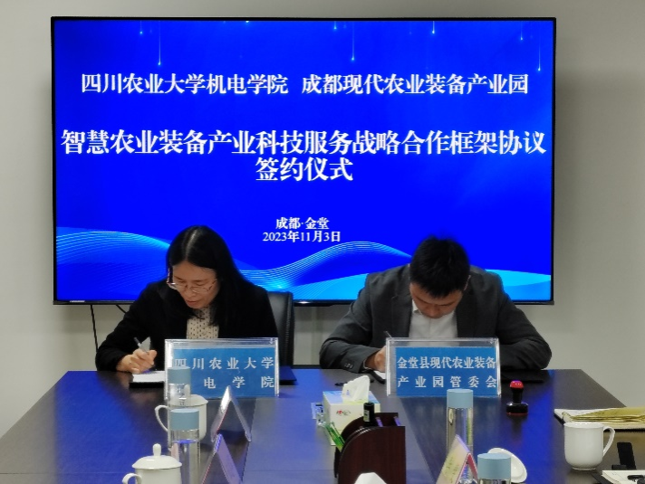 11月3日,威尼斯98488院长许丽佳教授率团队到成都现代农业装备产业园参加合作交流会,并现场签署了智慧农业装备产业科技服务战略合作框架协议,成都现代农业装备产业园管委会主任、竹篙镇党委书记周向荣、竹篙镇副镇长尹刚、成都现代农业装备产业园管委会副主任李斐等出席了签约仪式。
