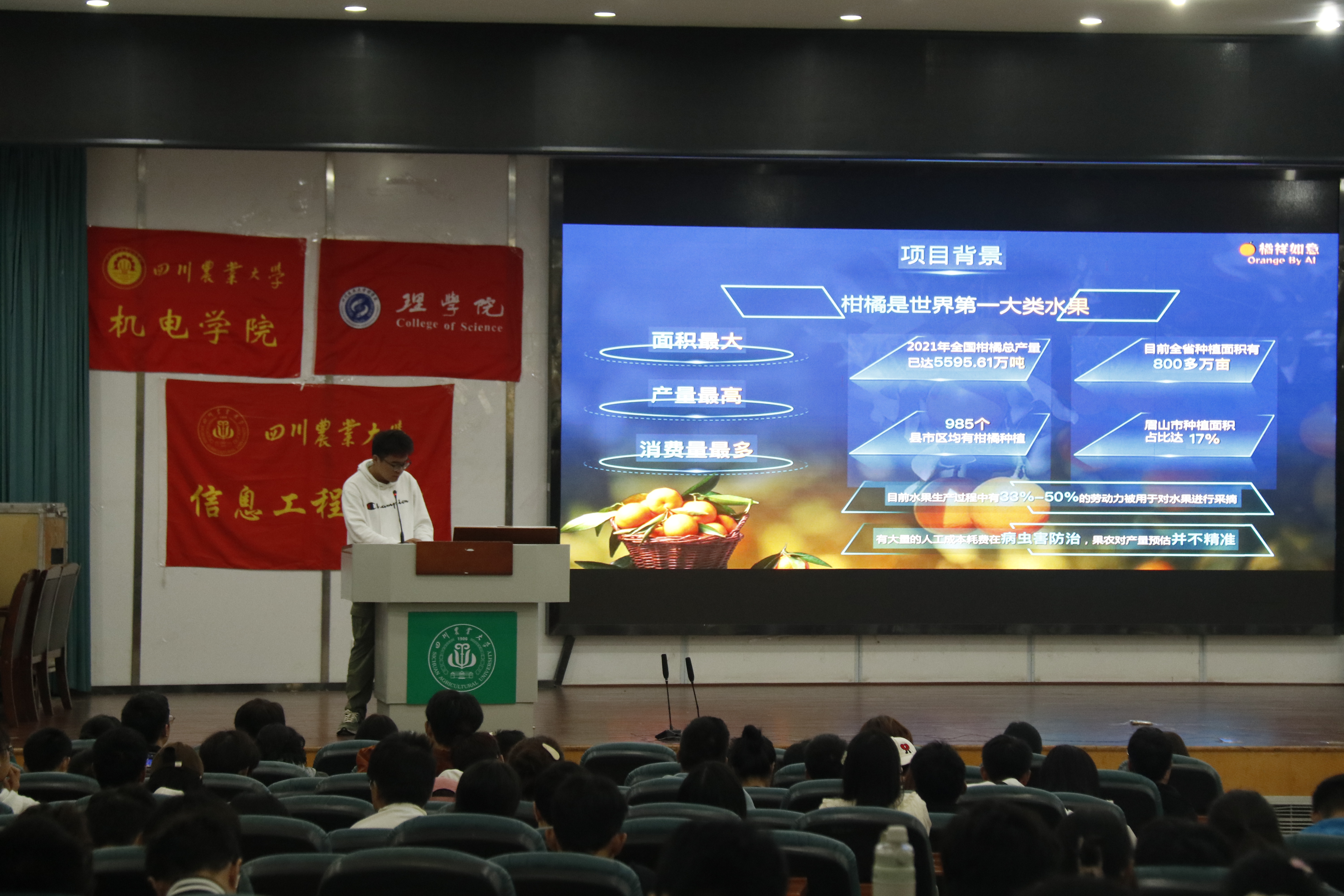 本次宣讲会由历届创新创业优秀团队带来经验分享,宣讲成员们精心准备,以自己亲身经历为例激发了2023级新生们对于创新创业的热情。来自威尼斯98488的第九届“互联网+”省金项目负责人吴佳怡、理学院的研究生黄琨以及来自信息工程学院“ 挑战杯”省级特等奖团队“育鸭有道”和“ 互联网+”省级银奖团队“ 橘祥如意”,均带来了精彩纷呈的分享。