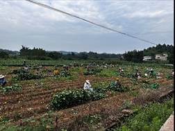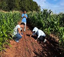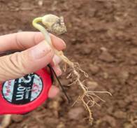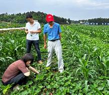 6月29日上午,团队来到资阳市雁江区丹山镇顺家村、回龙乡进行调研大豆复合种植情况。该地区主要以“2+3”玉米套种大豆模式为主,在连续的高温土壤含水量不足的情况下,绝大部分大豆发芽时无法顶破种皮,导致芽胚无法伸展继续生长,甚至有些种子在还未发芽便在土壤中霉变。高温导致该地区的大豆出苗率极低,后期还需再次补播。由于高温影响,较大部分地区的夏大豆播种时间被迫延迟,无法在预期的时间内进行播种。