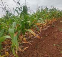 下午,团队来到乐至县中天镇、佛星镇等地,该地区采用玉豆套种模式,人工穴播和机播混合。该地的春大豆已经结荚,但受高温旱情和病虫害影响,大豆结荚质量降低,植株叶片出现孔洞、干边现象;6月下旬播种的夏大豆由于干旱出苗较差。因此,此次阶段性持续高温天气将对大豆及玉米正常生长带来一定的不利影响,若后期雨水不足需及时人工干预。