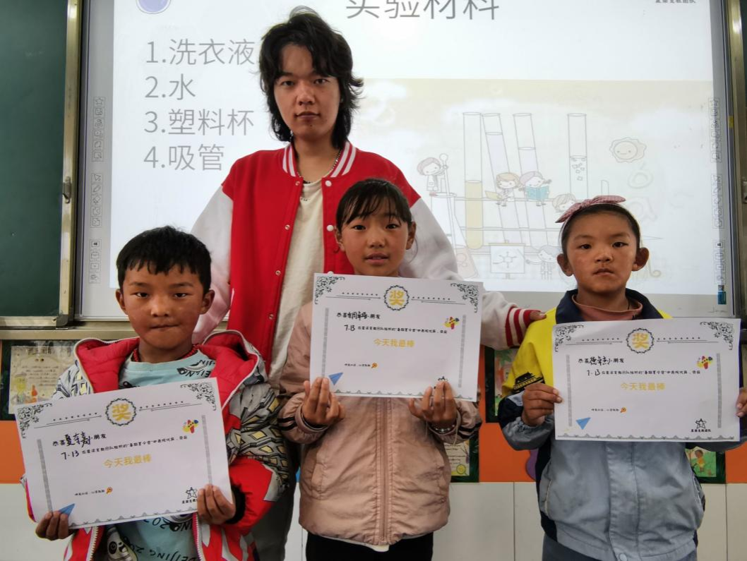 经过一周的熟悉,成员们逐渐适应支教的生活,积极营造和谐、轻松的课堂教学氛围,小朋友们也同志愿者渐渐亲近。虽然也有小朋友在课堂上坐不住,不时顽皮一下,但也有让志愿者感动的时刻。当小朋友用天真稚嫩的童音说着“老师,早上好!”、“老师,这个爱心我要送给你!”,当小朋友们将精心准备的折纸送给志愿者们,或者在下课的时候主动牵起志愿者的手,亦或争先恐后向志愿者们分享今日的见闻,这都让志愿者收获满心欢喜。
