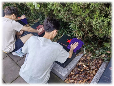 本次社会实践中,实践队员分为了两个小队,分别进行了学习先烈事迹与祭奠扫墓两项活动。