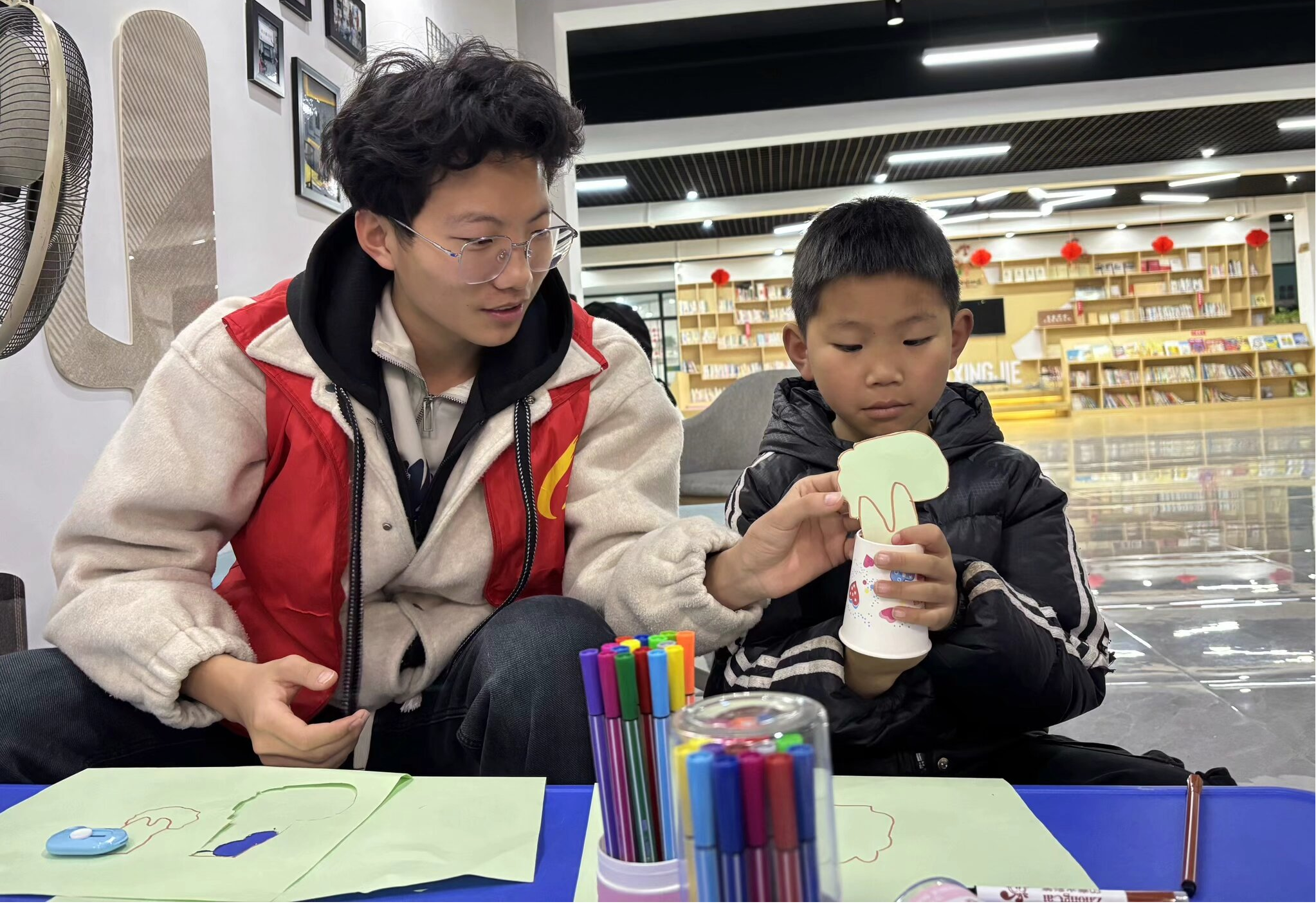 (图为志愿者和孩子们在一起制作“维权树” 摄/张蓝月)