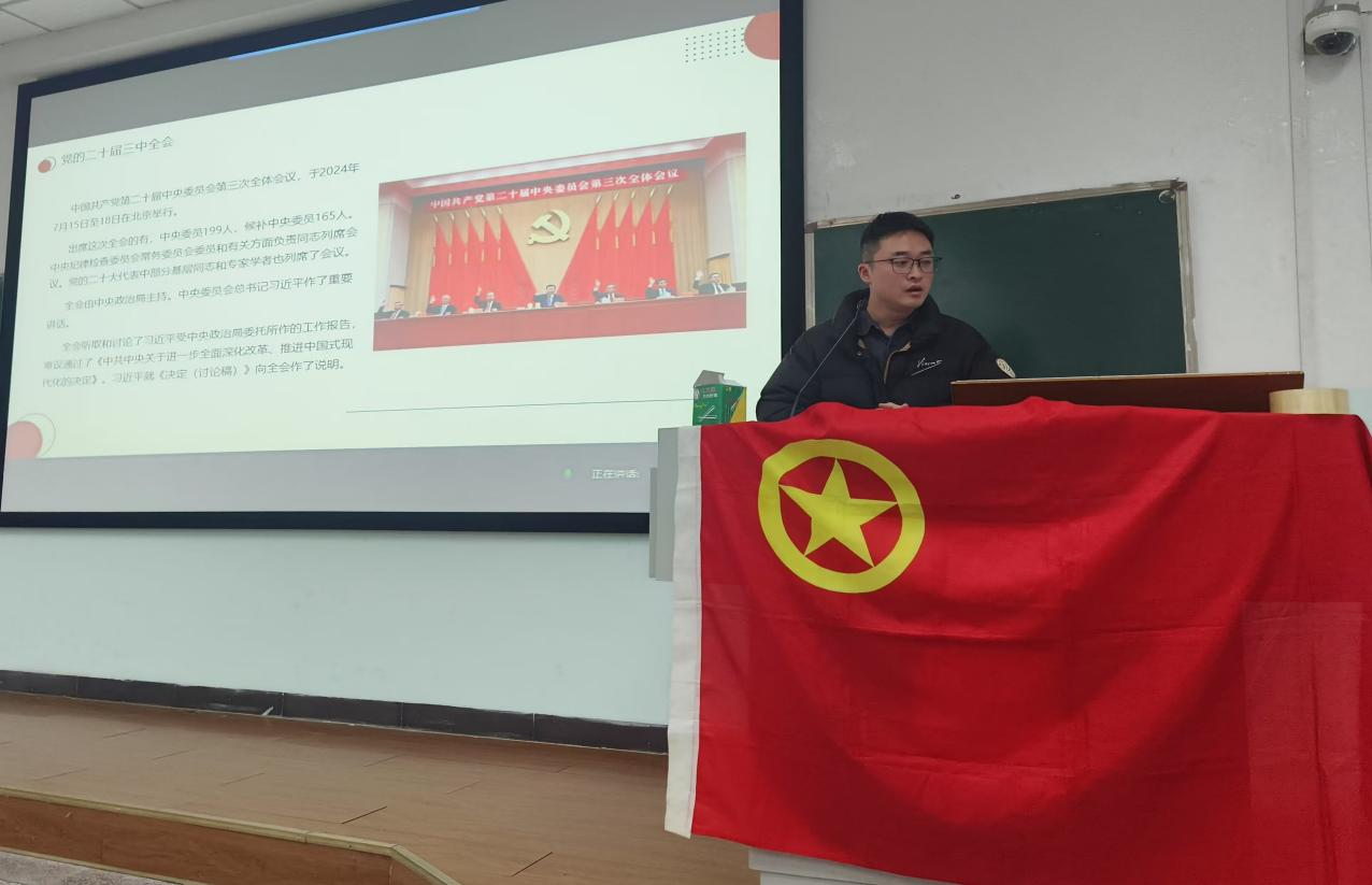 12月17日下午,威尼斯98488青马工程精进班第二讲暨第九期团校培训第三讲在10教A102、A103开展。本次培训邀请到院党委副书记黄锎靓主讲《党的二十届三中全会的学习分享》。