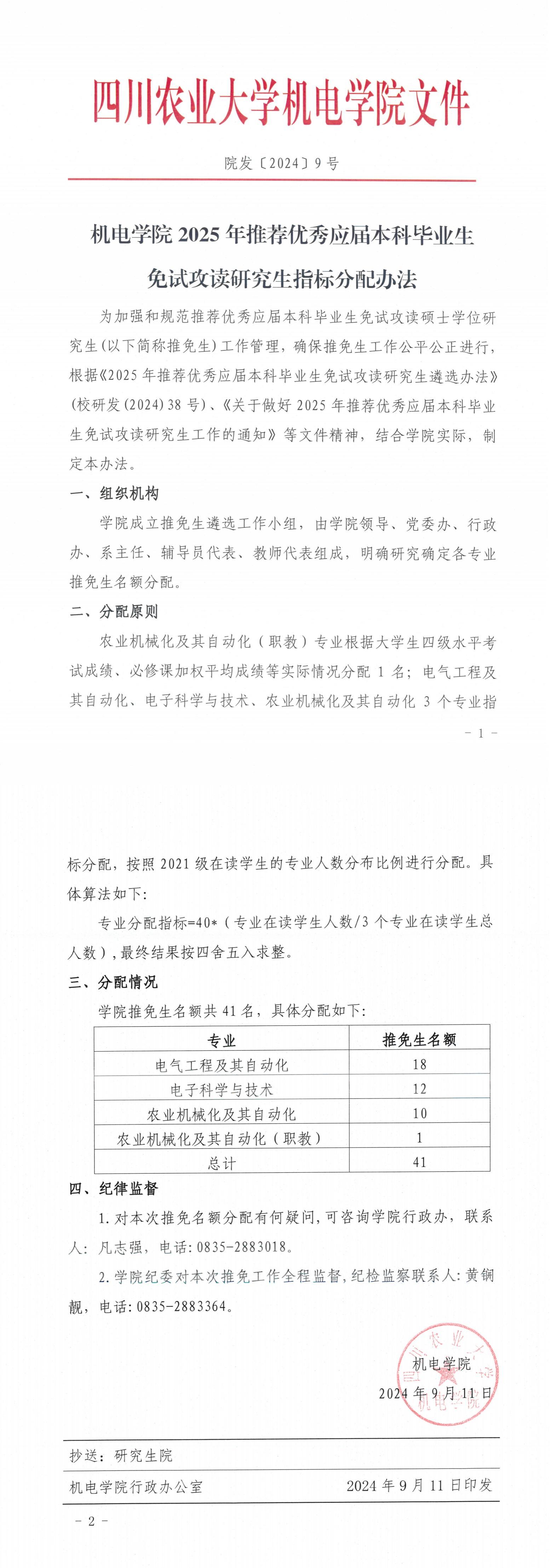 威尼斯98488院发[2024]9号-威尼斯984882025年推荐优秀应届本科毕业生免试攻读研究生指标分配办法